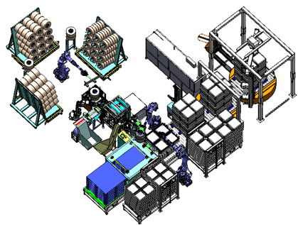电池隔膜卷全自动包装及打板。