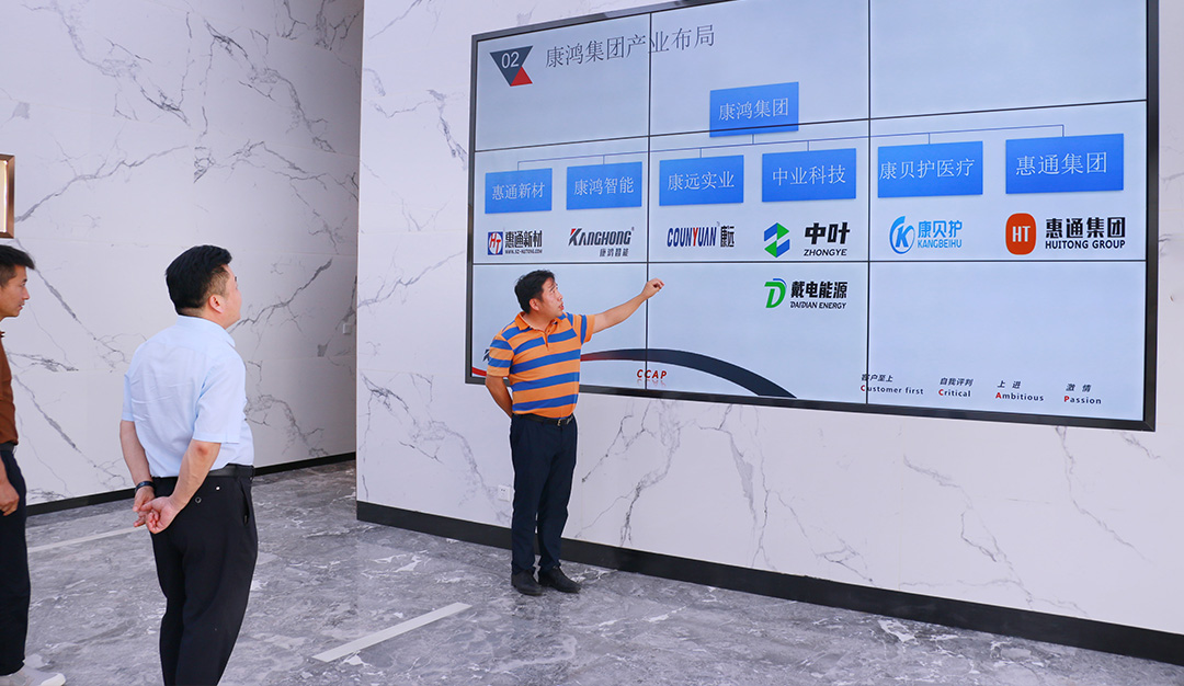 During the meeting, Chairman Zhao Guoman introduced the growth process and business field of Kanghong Group. Currently, Kanghong Group has four industries: deep research in the fields of new materials, intelligent equipment, medical supplies, new energy and so on. It is a high-tech enterprise with more than 200 patents accumulated.
